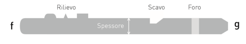 smerigliatura con bordi ribruciati (f) o smussati (g)