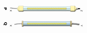 Helios Quartz Technical Department can realize twin tube IR emitters with different filament configuration. This allows an extraordinary flexibility both in term of heated area modularity and cables position. In the picture below there are represented some of the most common filament configuration.