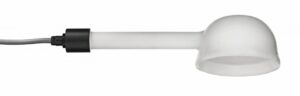 Linear shape with ending part of the emitter coming out at 90° from the lamp body