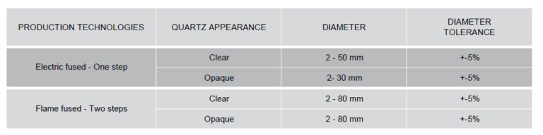 Helios Quartz offers a wide range of quartz glass rods characterized by a high thermal and mechanical stability. It is possible to choose between clear, translucent or opaque rods up to 80 mm of outside diameter.